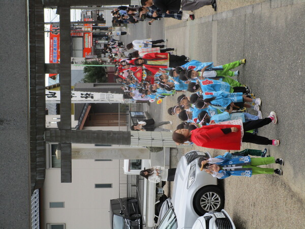 小幡駅前でみちゆく人に「お願いします」と声かけして啓発グッズを手渡しました。